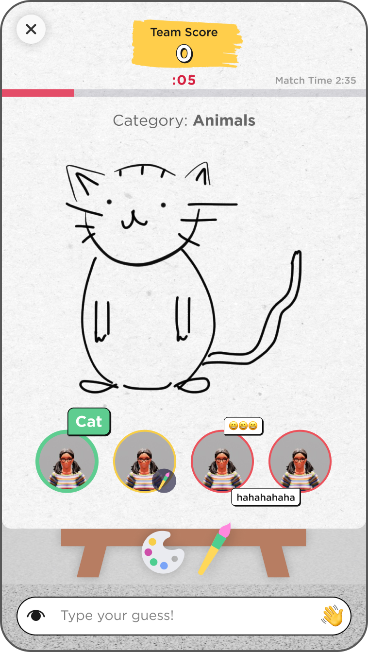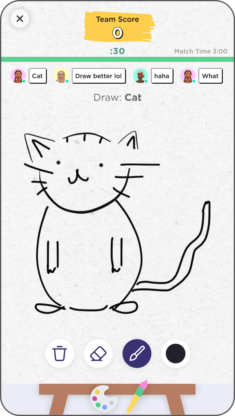 Drawing Together is a canvas-first, 2–4 player Pictionary-style game designed for warm, low-pressure togetherness. Each round follows a simple rhythm—prompt → draw/guess → reveal—with gentle timers to add energy without stress and little celebration beats on the reveal. The goal is social: make it easy to contribute, build camaraderie through teamwork, and turn small wins into real friendship.