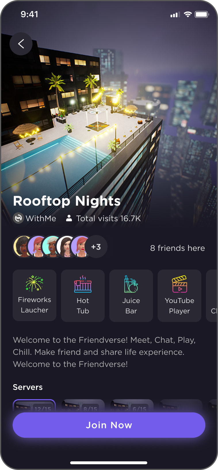 At Together Labs (the team behind IMVU), we launched WithMe—a new 3D mobile social platform built in Unreal Engine 5—and as the founding designer, I shaped the product experience end-to-end to deliver interconnected, real-time interactions with modern avatars beyond IMVU’s chat-centric worlds.